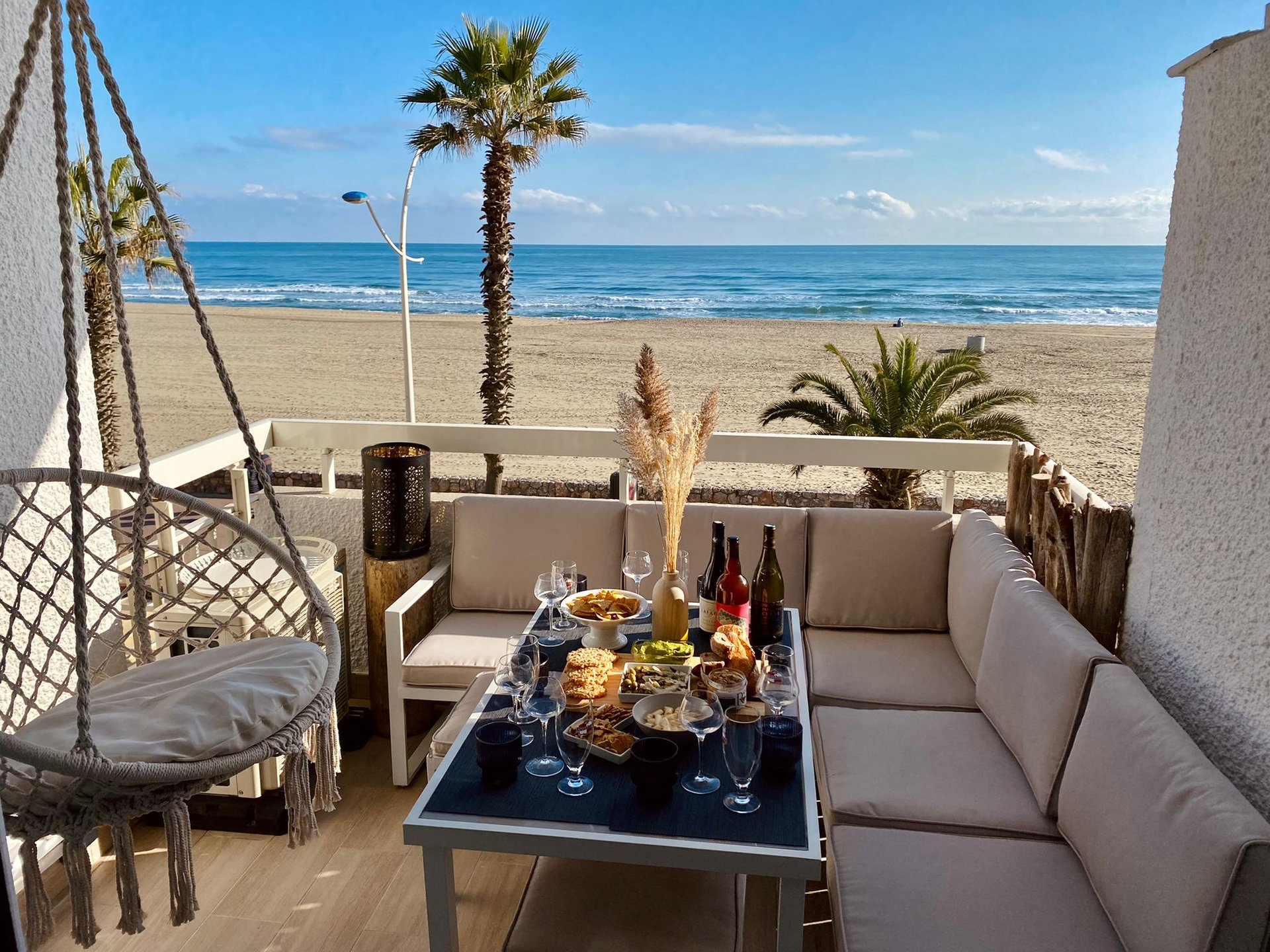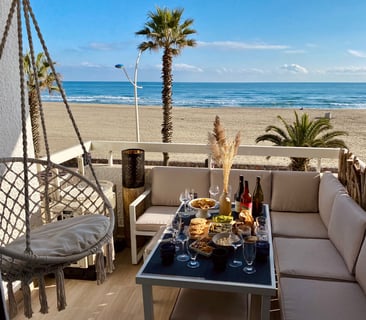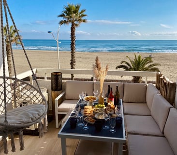 Détendez-vous sur la plage, appréciez notre terrasse panoramique vue mer et savourez un apéro en famille ou entre amis en admirant les couchers de soleil.
