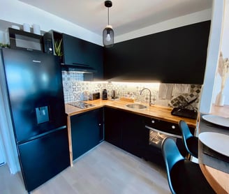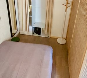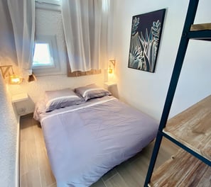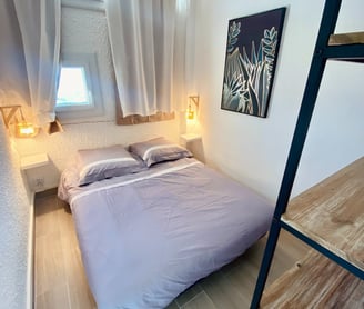 Notre logement de 38m2, entièrement rénové en 2022, peut accueillir jusqu'à 6 personnes. Il propose deux chambres avec lits (140 x 190) et rangements, dont l'une est séparée du salon par une cloison en bois ajourée. Nous mettons à disposition un lit parapluie et une poussette canne.